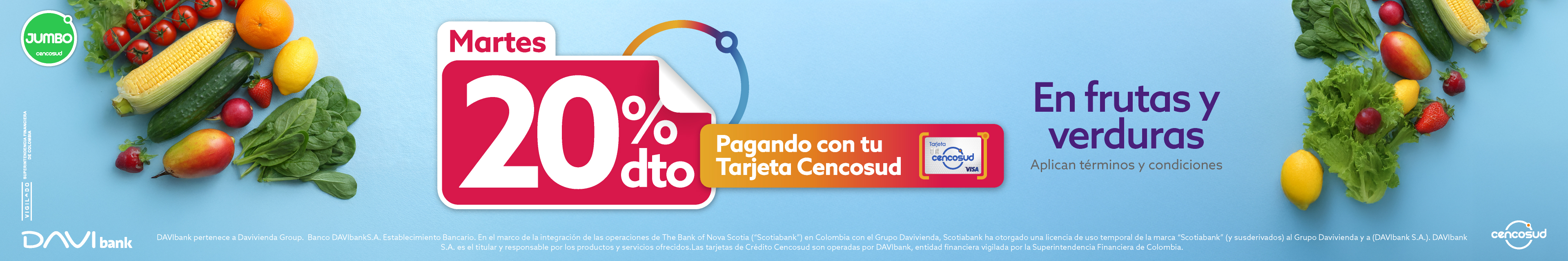 20/11/2020®Marca registrada de The Bank of Nova Scotia, utilizada bajo licencia. Scotiabank Colpatria Establecimiento Bancario. No acumulable con otros descuentos. No aplican productos de folletos vigentes. Sujetos a disponibilidad de la tienda. Máximo 2 transacciones por clientes, máximo 2 unidades de la misma oferta por transacción por día. No aplica para clientes mayoristas, entiéndase como cliente mayorista el cliente que compre más de ocho unidades de la misma oferta. No aplican productos identificados como precios bajos todos los días ni Jumbo Packs. Aplica en línea de cajas o al finalizar la compra. No aplica para domicilios telefónicos ni pagos contra entrega. No aplican productos de Marketplace, solo aplican productos comercializados, facturados y entregados por Cencosud Colombia S.A. Máximo 1 transacción por cliente de $200.000.